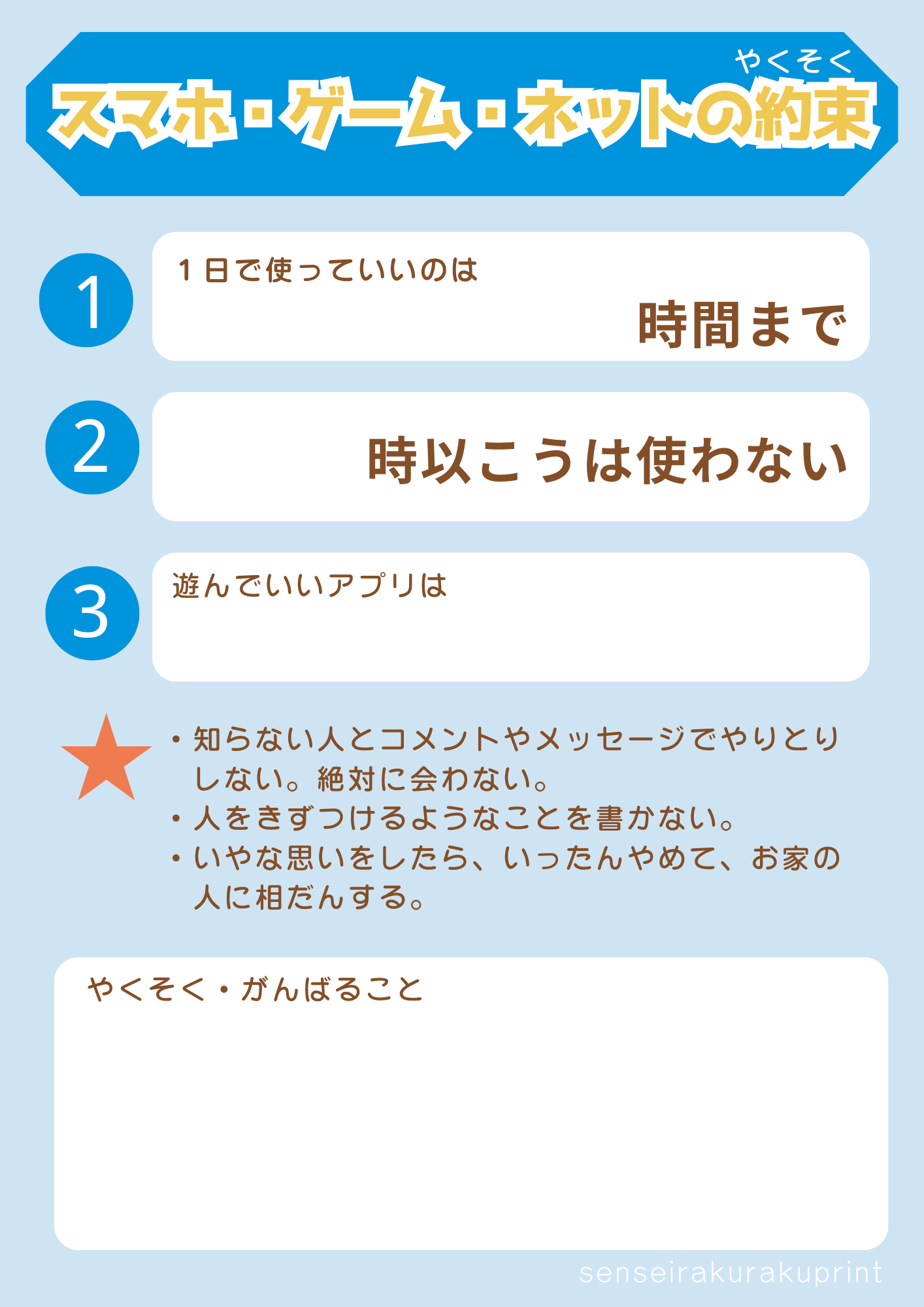 スマホ・ネット・ゲームの約束(小学生向け)