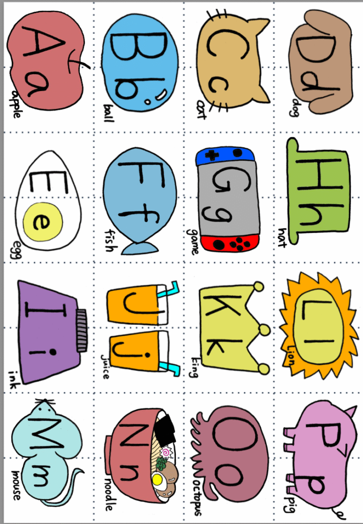 大文字と小文字のペアを探し、言えたらゲット。グループで順番にやっていけば、競争することなく仲良くできますね。