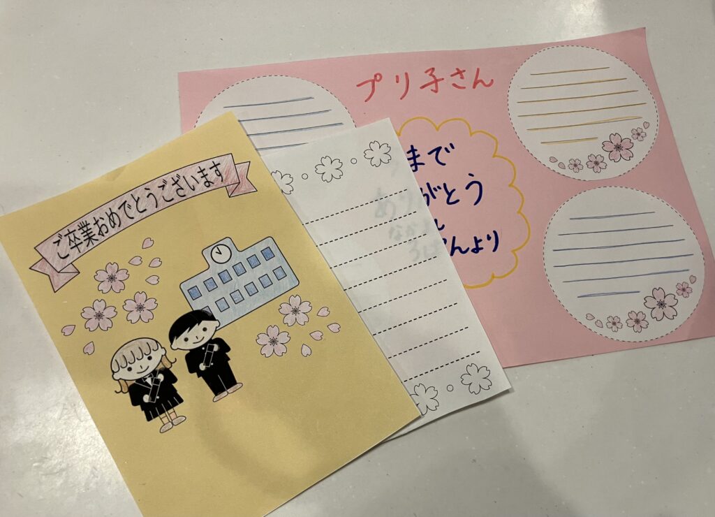 を解決する桜カードを作成しました。シンプルデザインです。6年生を送る会や卒業式、離任式などにどうぞ。